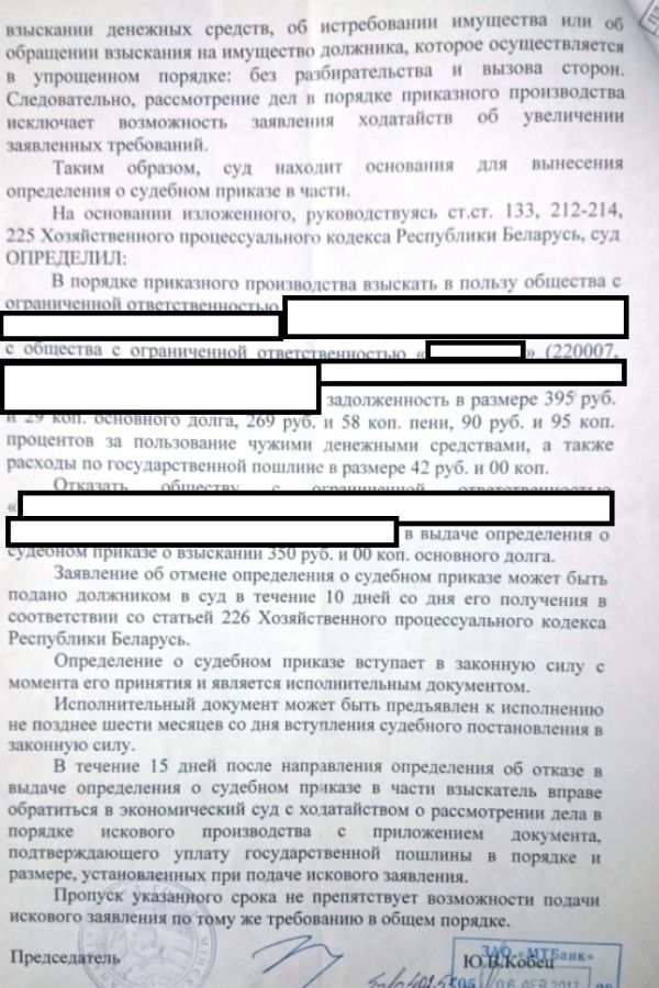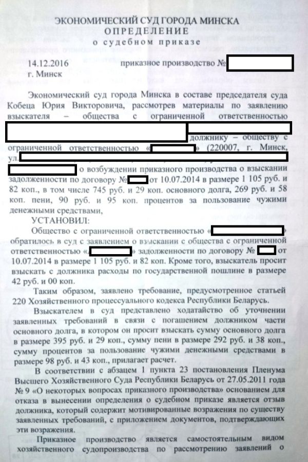 Решение суда 21 За просрочку оплаты по договору поставки Экономический суд города Минска взыскал с ООО 395 р. основного долга, 350 р. неустойки и 42 р. судебных расходов. Продолжительность дела: 30 дней